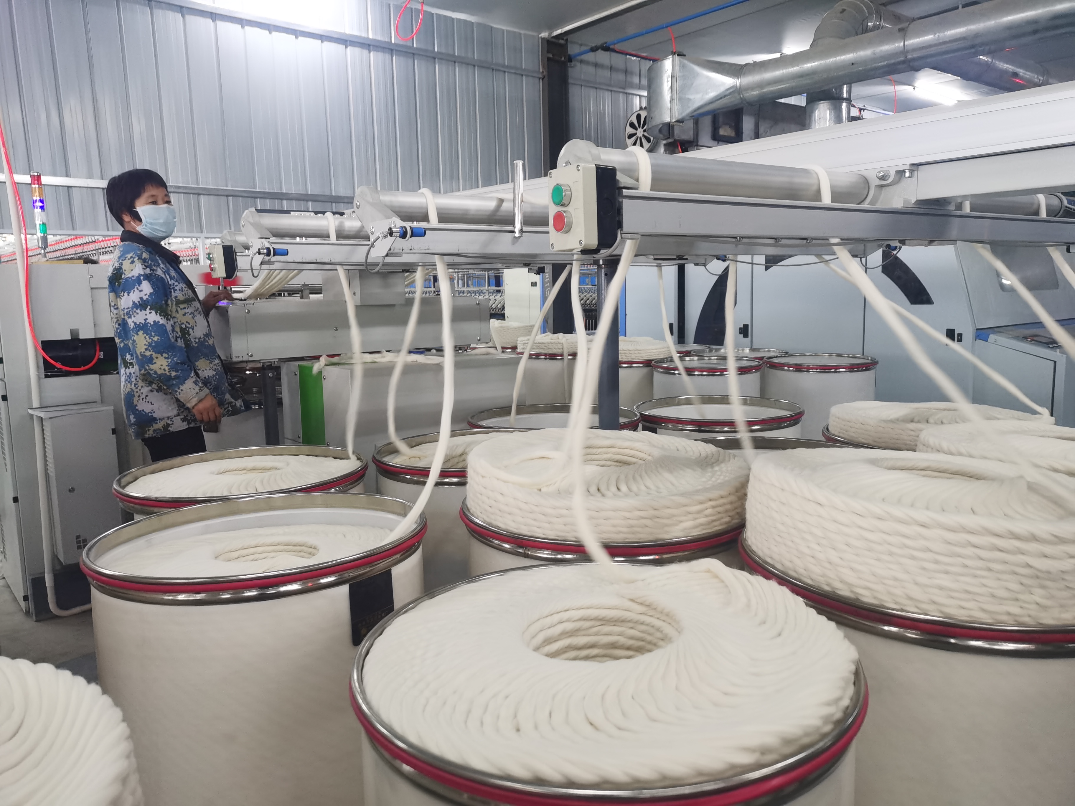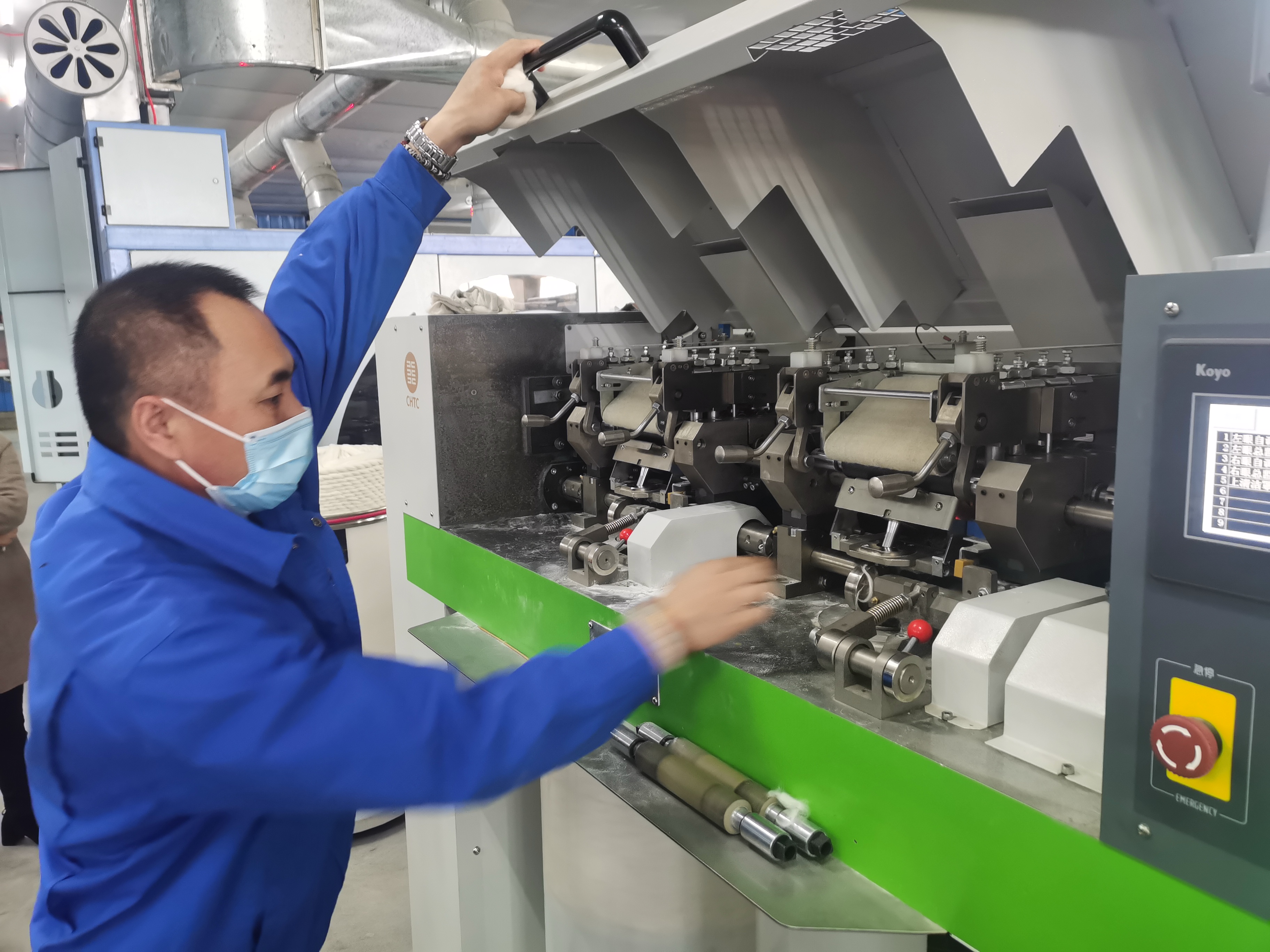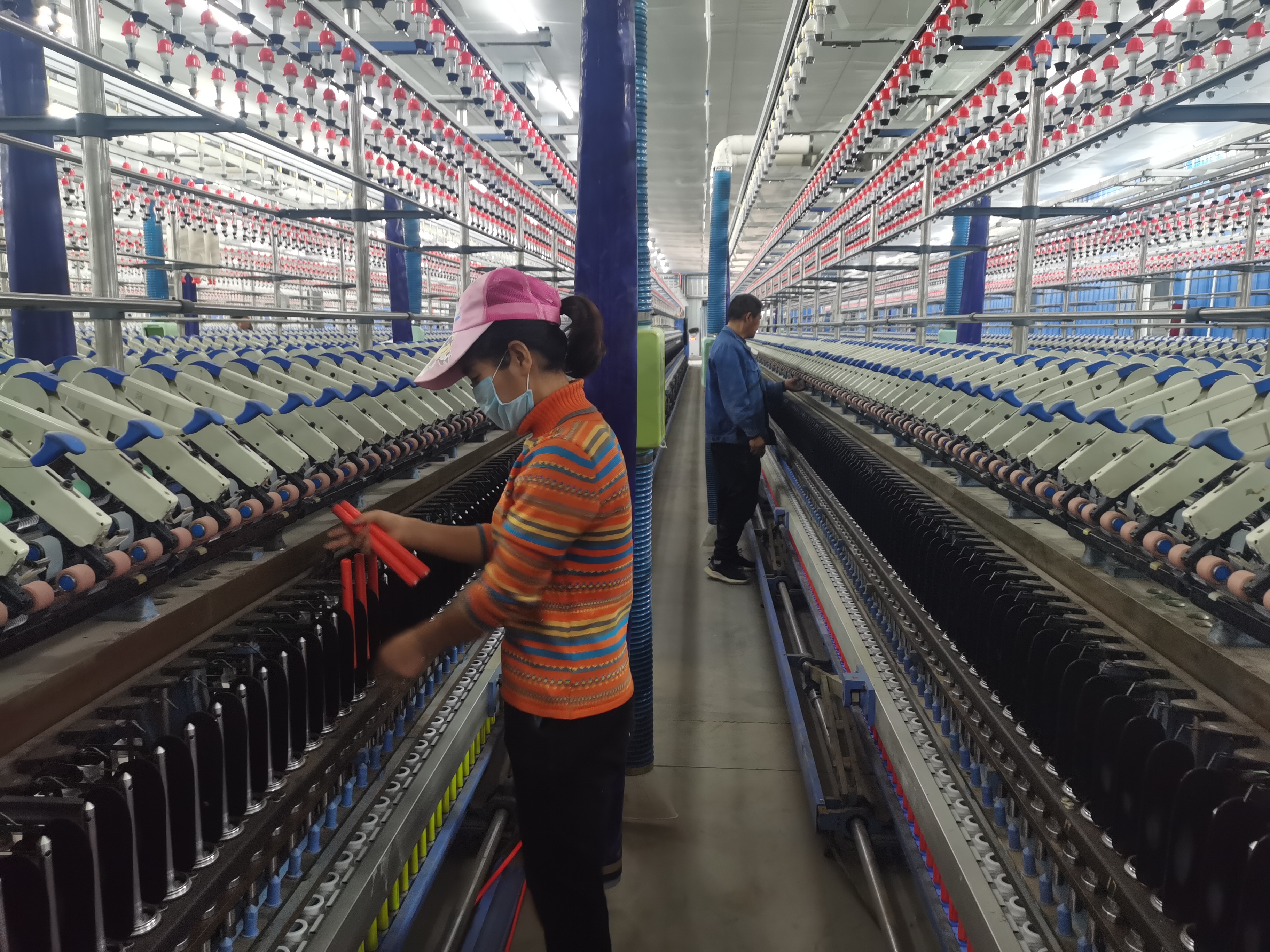 11月9日,扶溝縣博發(fā)紡織有限公司一期2萬紗錠生產(chǎn)線進口設備安裝完畢,正在試車。