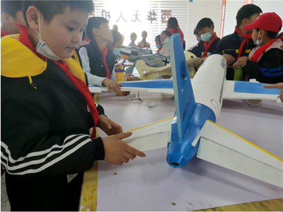 除了觀看有趣的表演外,更多的同學(xué)好奇地想一探無人機(jī)飛行的秘密。在安明慧帶領(lǐng)下,一群興奮又好奇的同學(xué)參觀了無人機(jī)5S展廳,聽取了多種植保無人機(jī)的用途及作業(yè)效率介紹;在無人機(jī)產(chǎn)業(yè)園大數(shù)據(jù)中心,觀看了無人機(jī)應(yīng)用視頻及大數(shù)據(jù)視頻;在無人機(jī)產(chǎn)業(yè)園科普室,觀摩了擺放的各種模型機(jī),有的同學(xué)還在黨員飛手的指導(dǎo)下,組裝了飛機(jī)模型,提高大家的動(dòng)手能力和對(duì)航空航天的熱愛和興趣,讓同學(xué)們度過了一個(gè)愉快的周末。