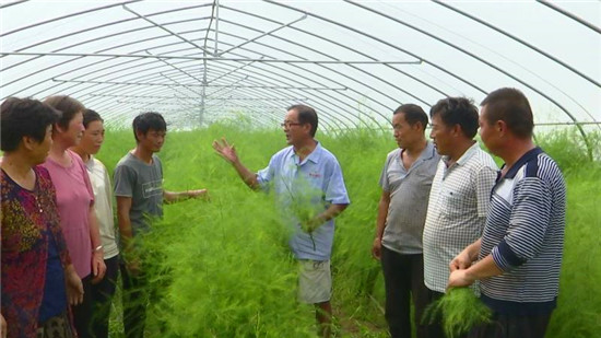 今年30歲的王永振,是皮營(yíng)辦事處鄺橋社區(qū)劉莊村人,2013年大學(xué)畢業(yè)后返鄉(xiāng)創(chuàng)業(yè)。后在當(dāng)?shù)卣畮头鱿?,成立?zhuān)業(yè)合作社,目前有社員35戶(hù),種植蘆筍300余畝,其中大棚蘆筍50座,畝產(chǎn)蘆筍1000余公斤,畝均收入8000余元,帶領(lǐng)村民逐漸走上致富道路。