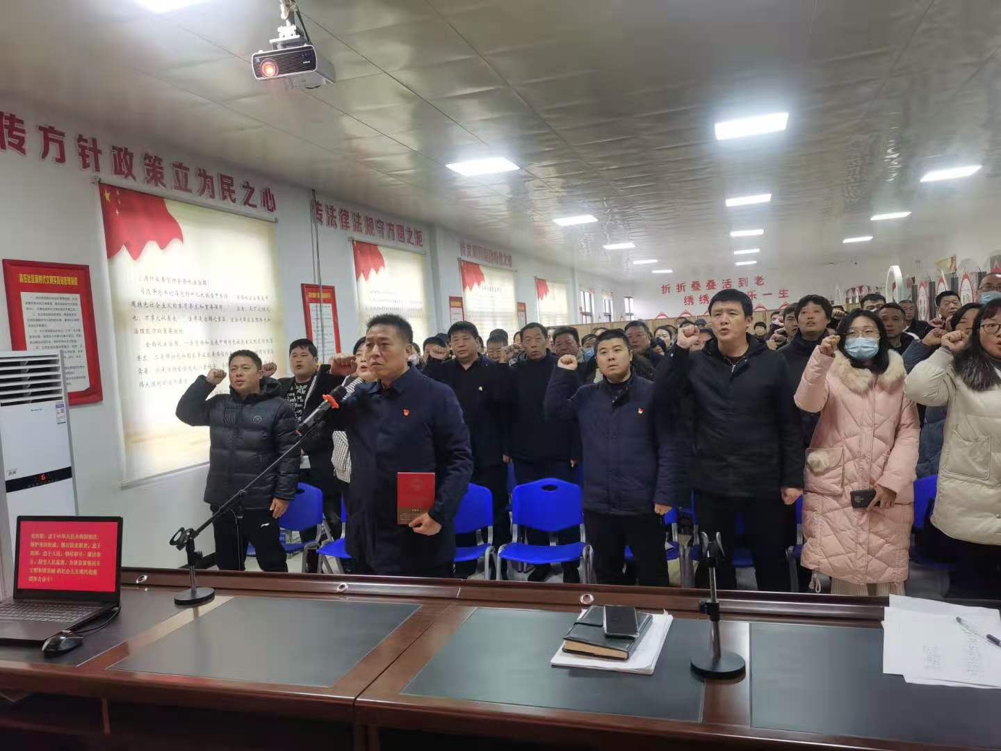 國歌響起,全體人員起立唱國歌。隨后,小橋街道辦事處黨工委書記侯明亮左手撫按憲法,右手舉拳,領(lǐng)誦誓詞,其他宣誓人跟誦誓詞。宣誓后,侯明亮對(duì)開展好憲法宣傳周宣傳活動(dòng)、學(xué)習(xí)黨的十九屆五中全會(huì)精神和習(xí)近平總書記關(guān)于憲法的重要論述做了具體安排部署,要求大家要結(jié)合當(dāng)前工作實(shí)際,做到依憲施政、依法行政,進(jìn)一步提高尊法學(xué)法守法用法意識(shí)。