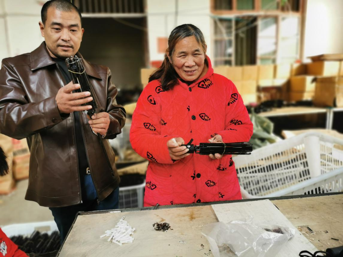 “群眾有呼聲,工作隊(duì)要有回聲。”縣農(nóng)業(yè)農(nóng)村局副局長(zhǎng)牛振說。當(dāng)日下午,縣農(nóng)業(yè)農(nóng)村局駐村工作隊(duì)、單莊村“兩委”班子召開專題會(huì)議,圍繞“單空軍上致富項(xiàng)目”獻(xiàn)計(jì)獻(xiàn)策。最終,駐村工作隊(duì)提出的“加工訂單雨傘”的建議被采納。于是,駐村工作隊(duì)隊(duì)員艾明明通過熟人關(guān)系,與福建省一雨傘生產(chǎn)企業(yè)聯(lián)系,達(dá)成了生產(chǎn)訂單雨傘的協(xié)議,并聘請(qǐng)已在這家雨傘生產(chǎn)企業(yè)從事質(zhì)量管理15年的技術(shù)員單福靈為常年技術(shù)生產(chǎn)管理顧問。