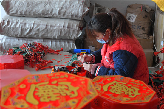 “‘一帆工藝’電子鞭炮一上市便受到客戶的追捧,每天訂單源源不絕?!辟R潘海介紹,春節(jié)臨近,現(xiàn)在客戶都在備貨,現(xiàn)在他們廠加班加點(diǎn),每天可以生產(chǎn)電子鞭炮1200掛,但是還是供不應(yīng)求。