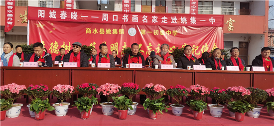12月25日,商水縣文聯(lián)邀請書畫家走進商水縣姚集一中開展“陽城春曉---周口書畫名家進校園”活動??h政協(xié)主席孫培忠,縣人大常委會副主任李峰、原縣政協(xié)副主席司新國、縣教體局局長鄭春來、縣文聯(lián)主席劉秋玲出席活動。