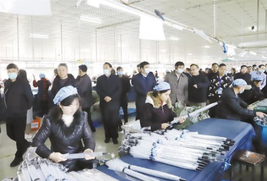 12月23日下午,在鄲城縣舉行的中國日用雜品工業(yè)協(xié)會制傘專業(yè)委員會五屆五次暨六屆一次會員代表大會中,來自全國制傘行業(yè)的精英們先后來到鄲城會客廳、傘業(yè)產(chǎn)業(yè)園、兄和家居、返鄉(xiāng)創(chuàng)業(yè)園、洺河森林樂園、鄲城一高、人民公園、體育場等地,實地感受鄲城高質(zhì)量發(fā)展成果和傘業(yè)發(fā)展?jié)摿?,共謀中國傘業(yè)的發(fā)展前景。 記者 徐松 攝