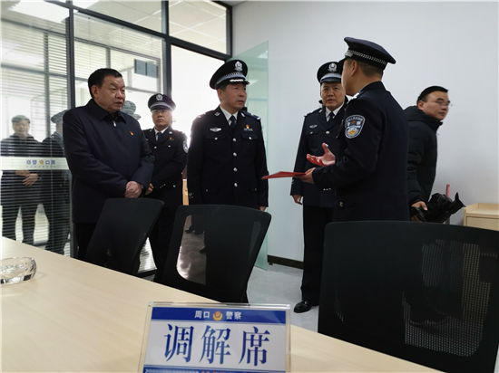 揭牌儀式后,參加儀式的全體人員實地參觀了華耀城派出所軟硬件設(shè)施等。據(jù)了解,該派出所學(xué)習(xí)借鑒一線先進城市公安派出所營房建設(shè),具備群眾接待區(qū)、非警務(wù)警情分流區(qū)、民警工作區(qū),分區(qū)合理,同時派出所視頻指揮室更是具備了警務(wù)可視化、和警務(wù)搜索查找功能,以科技服務(wù)破案、服務(wù)民生。派出所的成立,對進一步提升轄區(qū)打防管控水平、營造和諧穩(wěn)定的營商環(huán)境必將起到積極的推動作用。作為華耀城派出所首任所長邵海濤表示,全所上下將始終堅持“不忘初心、牢記使命”,大力弘揚新時代周口公安精神,忠誠履職、忠于職守,以最高標(biāo)準(zhǔn)、最佳狀態(tài),為轄區(qū)群眾保駕護航。