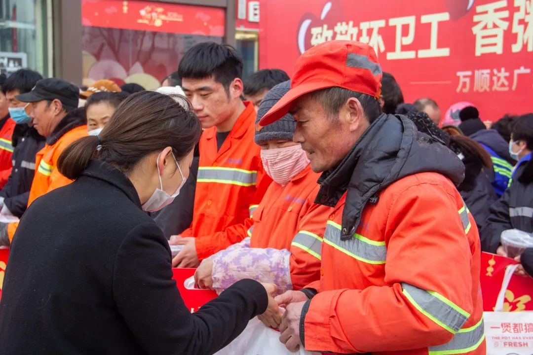 大寒節(jié)氣,當(dāng)我們還在溫暖的被窩里,環(huán)衛(wèi)工人已經(jīng)開始清掃城市街道,公安民警正在值守夜班,一座城市的平安和美麗都離不開他們默默的付出。為了表達(dá)感謝,萬順達(dá)廣場精心熬制了一鍋臘八粥,并準(zhǔn)備了食品、抗疫用品、日用品等,在冬日的寒冷里,給他們送去春天般的溫暖。