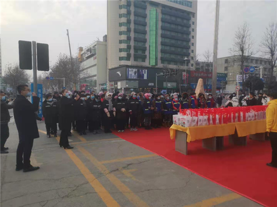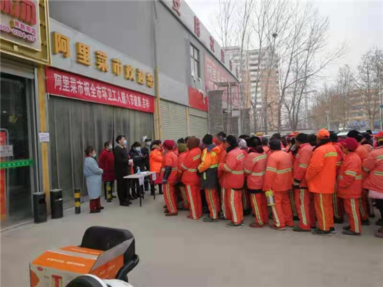 1月20日是傳統(tǒng)節(jié)日臘八節(jié),一大早,中心城區(qū)萬順達廣場就為川盛環(huán)境有限公司的環(huán)衛(wèi)工們準(zhǔn)備了臘八粥和毛巾、口罩等防疫物資,阿里市場為每名環(huán)衛(wèi)發(fā)放10元代金券,持劵可在市場內(nèi)消費購物,愛心企業(yè)為辛勤的城市美容師在寒冷的冬季送上了一份暖心的祝福。