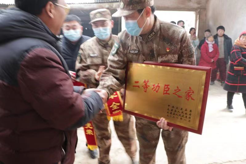 1月21日下午,太康縣高賢鄉(xiāng)保渡村現(xiàn)役軍人程勝杰家門前鑼鼓喧天,喜氣洋洋,熱鬧非凡。太康縣委常委、縣人武部部長于永前,政委郭立君,縣退役軍人事務(wù)局局長潘布道,高賢鄉(xiāng)黨委書記鄭宏等相關(guān)領(lǐng)導(dǎo)一行,為榮立二等功的程勝杰家屬送來了立功喜報(bào)、“二等功臣之家”牌匾及5000元慰問金。