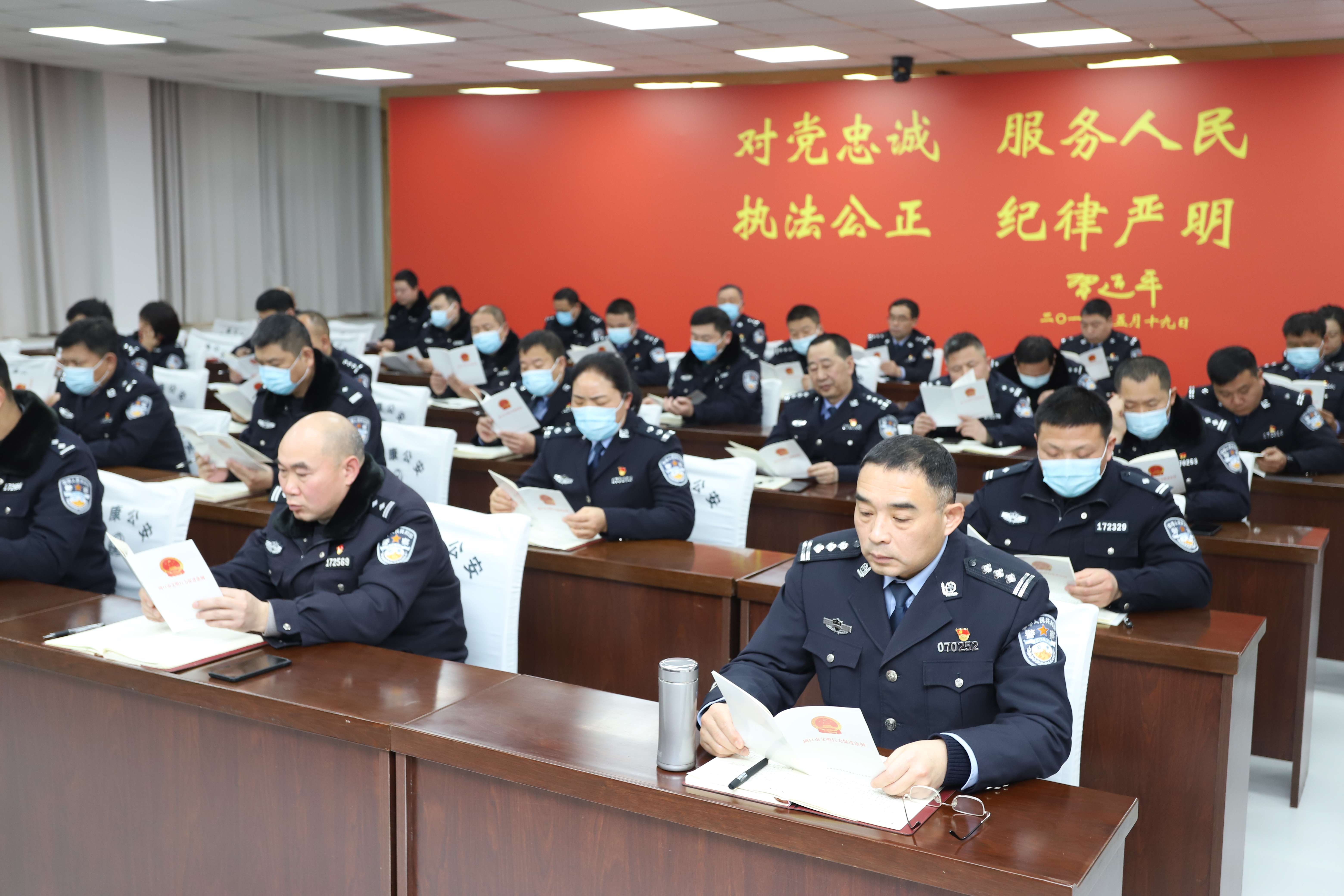 太康縣公安局重視精神文明建設(shè)工作,日前局黨委號(hào)召全體民警說文明話,做文明事,爭(zhēng)做文明警察,創(chuàng)建文明警營活動(dòng)。圖為該局組織民警學(xué)習(xí)《周口市文明行為促進(jìn)條例》。③5
