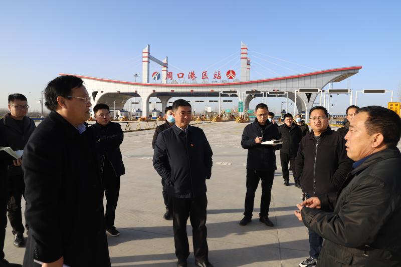 大廣高速港區(qū)互通立交項(xiàng)目距中心港碼頭約為1.2公里,目前已經(jīng)達(dá)到通車條件,通車后通過(guò)疏港道路實(shí)現(xiàn)碼頭與高速無(wú)縫對(duì)接。在該項(xiàng)目收費(fèi)站,孫鵬詳細(xì)詢問(wèn)項(xiàng)目負(fù)責(zé)人通車前需要做的工作,他指出,高速公路是多式聯(lián)運(yùn)的重要組成部分,要抓緊時(shí)間解決目前存在問(wèn)題,推進(jìn)大廣高速港區(qū)互通立交項(xiàng)目早日通車。