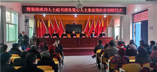 1月29日,天氣乍暖還寒,魏集鎮(zhèn)政府人頭攢動,喜氣洋洋,一片熱鬧的景象。內(nèi)蒙古希拉穆仁旅游置業(yè)開發(fā)有限公司董事長、內(nèi)蒙古楊子照明鋼桿制造有限責任公司董事長、內(nèi)蒙古周口商會會長趙書清和愛心人士朱富偉一行,帶著整整兩卡車米、面、油共計八萬元生活物資,回到家鄉(xiāng)魏集鎮(zhèn)開展扶貧濟困活動,在嚴寒的冬日給魏集鎮(zhèn)困難群眾帶來了溫暖和祝福??h政協(xié)主席孫培忠,縣委常委、宣傳部長李本磊出席活動。魏集鎮(zhèn)黨委書記衛(wèi)春忙,鎮(zhèn)長劉艷光參加活動。