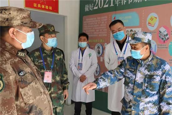 湯維政走進(jìn)內(nèi)科、外科、五官科、心電圖、心理測(cè)試等檢查科室,實(shí)地查看體檢站基礎(chǔ)設(shè)施、體檢流程、人員配備、疫情防控、后勤保障等情況。他看到體檢場(chǎng)所按照流程合理、尊重隱私、閉環(huán)管理的要求,結(jié)合疫情防控的需求優(yōu)化診室設(shè)置,醫(yī)務(wù)人員嚴(yán)格把控體檢項(xiàng)目的各個(gè)關(guān)口,給予了肯定和贊揚(yáng)。湯維政與現(xiàn)場(chǎng)候檢的應(yīng)征青年親切交談,了解他們的年齡、學(xué)歷、家庭等情況,對(duì)適齡青年、大學(xué)畢業(yè)生踴躍參軍、報(bào)效祖國(guó)的行為表示贊賞,勉勵(lì)他們積極接受祖國(guó)挑選,投身軍營(yíng)建功立業(yè)。