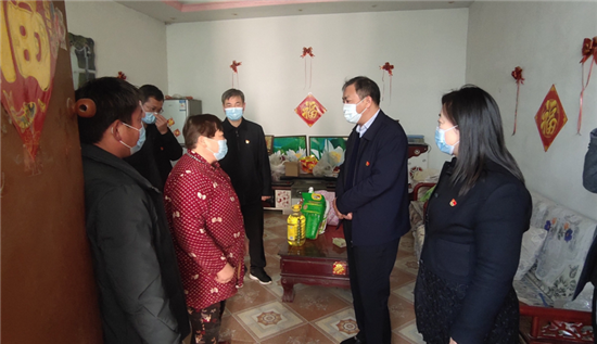 2月5日下午,帶著濃濃的牽掛和祝福,市政府副秘書長(zhǎng)、辦公室主任劉德君一行赴結(jié)對(duì)幫扶的淮陽(yáng)區(qū)齊老鄉(xiāng)柳南行政村開(kāi)展“話脫貧、感黨恩、奮進(jìn)新時(shí)代”走訪慰問(wèn)活動(dòng),為困難群眾和老黨員送去米面油、棉衣棉被等生活用品,并向他們致以新春的祝福。
