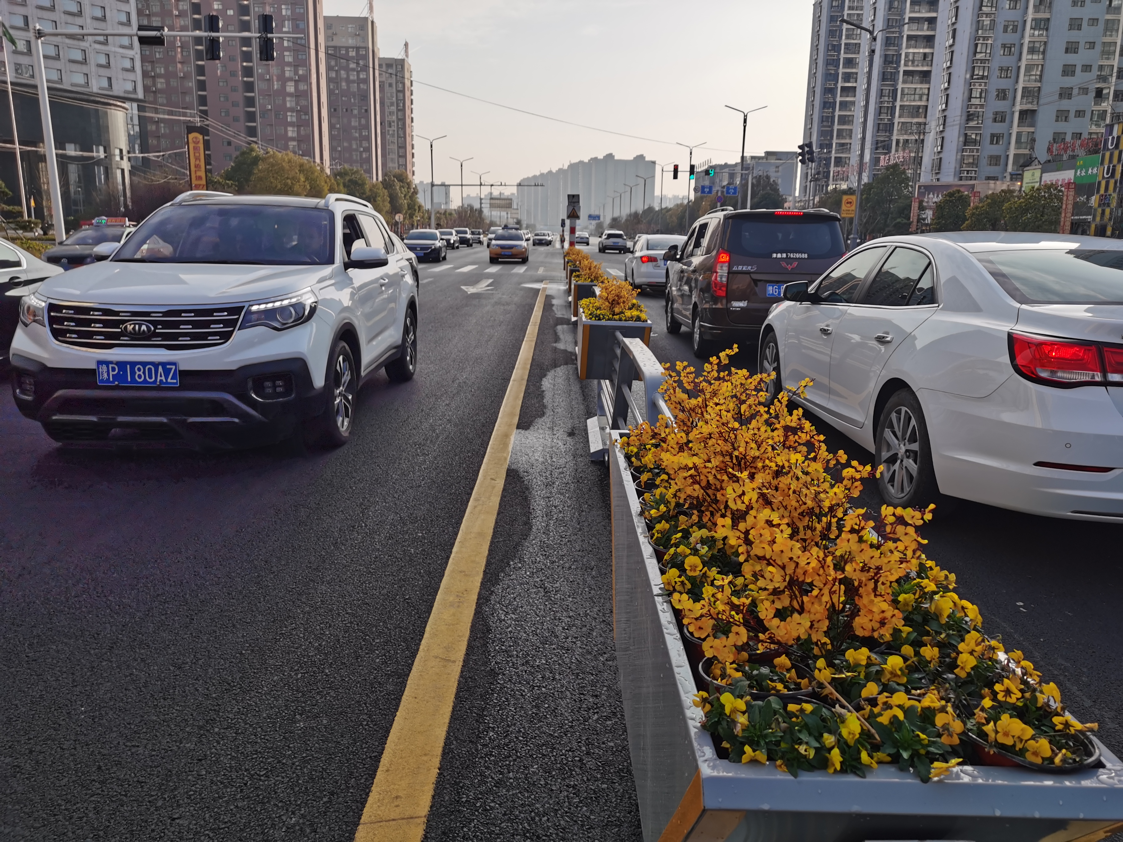 2月10日,走在商水縣陽城大道,發(fā)現(xiàn)快車道中間的欄桿換成帶花卉盒栽的新型欄桿,銀灰色的簡(jiǎn)潔造型的欄桿、紅、藍(lán)、黃等各色花卉,扮靚了充滿節(jié)日喜慶氣氛的商水縣城。