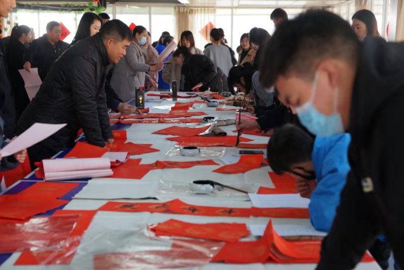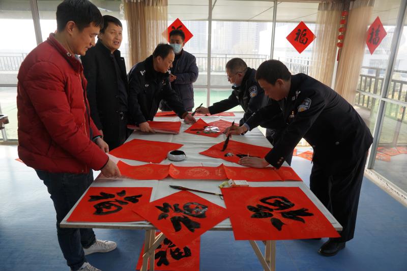 金牛賀歲來祥瑞,翰墨飄香迎新春。為弘揚(yáng)中華傳統(tǒng)文化,落實(shí)“從優(yōu)待警”舉措,傳遞市局黨委的親切慰問和關(guān)心關(guān)懷,豐富警營文化生活,營造歡樂祥和的節(jié)日氛圍,2月9日,項(xiàng)城市公安局在三樓大廳開展書贈(zèng)春聯(lián)活動(dòng),孫沄、閆永紅等5名警營書法家及16名蓮溪書院師生揮毫潑墨,現(xiàn)場為民警、輔警及工作人員義寫春聯(lián)、福字2000余套,受到了廣大民警、輔警的熱烈歡迎和充分好評(píng)。