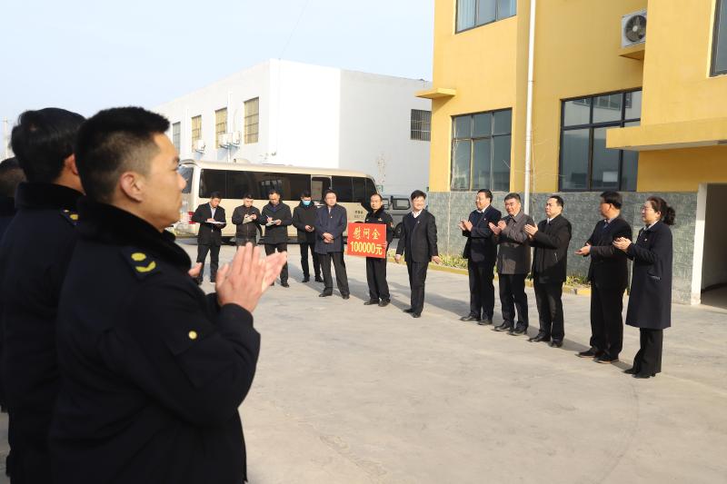 2月10日,周口港區(qū)黨委、管委會(huì)慰問民警、輔警、消防隊(duì)員、城管隊(duì)員,向長(zhǎng)期奮戰(zhàn)在一線的工作人員以及他們的家屬致以節(jié)日的問候和祝福。港區(qū)領(lǐng)導(dǎo)孫鵬、程若光、杜廣賢、張東立、李翔、李素芹參加慰問。