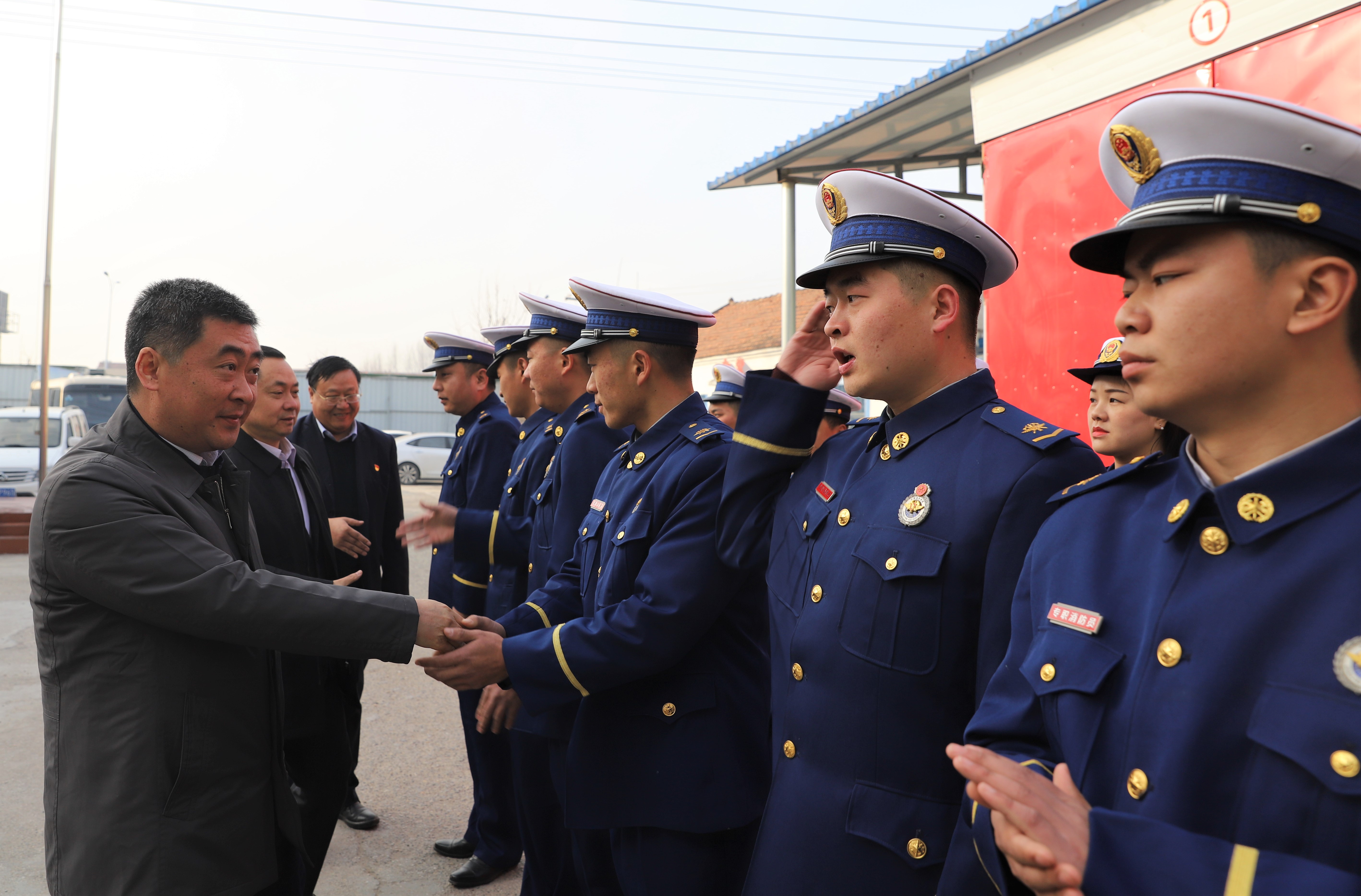 隨后,孫鵬、程若光將節(jié)日祝福和慰問金送到消防工作室,并再次囑托消防官兵要做好春節(jié)期間轄區(qū)消防安全工作。港區(qū)黨委委員杜廣賢說,過去一年來,港區(qū)消防官兵始終以強(qiáng)烈的政治責(zé)任感和憂患意識(shí),主動(dòng)承擔(dān)急難險(xiǎn)重任務(wù),在防火滅火第一線不辱使命扎實(shí)工作,無(wú)私奉獻(xiàn)為港區(qū)臨港經(jīng)濟(jì)發(fā)展、政治穩(wěn)定作出了積極貢獻(xiàn),受到全區(qū)干部群眾的一致好評(píng),得到了上級(jí)主管部門的充分肯定。港區(qū)黨委、管委會(huì)對(duì)過去一年來的消防工作十分滿意,杜廣賢代表港區(qū)黨委、管委會(huì)向全體消防官兵致以崇高的敬意。他指出,2021年將是港區(qū)大發(fā)展、大跨越的一年,希望消防官兵在今后的工作中繼續(xù)發(fā)揚(yáng)不畏艱險(xiǎn)、無(wú)私奉獻(xiàn)的好作風(fēng),為臨港經(jīng)濟(jì)發(fā)展作出新的貢獻(xiàn)。