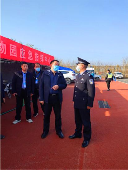 調(diào)研中,李宗喜實(shí)地查看了景區(qū)周邊疫情防控、通訊保障、交通疏導(dǎo)、治安防控、應(yīng)急保障、停車(chē)秩序等工作落實(shí)情況,對(duì)堅(jiān)守一線(xiàn)的全體工作人員表示慰問(wèn),希望各有關(guān)部門(mén)要繼續(xù)加強(qiáng)周口森林野生動(dòng)物世界春節(jié)期間值班值守和各項(xiàng)保障工作,確保無(wú)疫情事故、無(wú)刑事治安事件、無(wú)安全事故、無(wú)負(fù)面輿情和持續(xù)炒作事件、無(wú)大面積交通擁堵、無(wú)園區(qū)周邊違規(guī)經(jīng)營(yíng)等“六個(gè)無(wú)”的工作目標(biāo)。同時(shí),園區(qū)要與周口市公安局川匯分局加強(qiáng)溝通協(xié)作,盡快成立警務(wù)室,形成長(zhǎng)效管理機(jī)制,保障園區(qū)平穩(wěn)安全運(yùn)行。