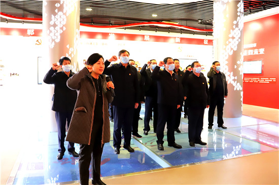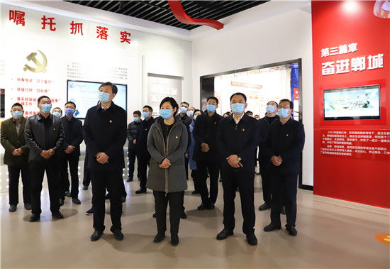 2月18日,新年上班第一天,市人大常委會副主任、鄲城縣委書記羅文閣,縣委副書記、縣長李全林帶領(lǐng)縣四個班子領(lǐng)導(dǎo)和部分縣直單位黨員干部,開展中共黨史學(xué)習(xí)教育活動,激勵全縣各級黨員干部不忘初心、牢記使命,在新時代不斷加強(qiáng)黨的建設(shè),更加緊密地團(tuán)結(jié)在以習(xí)近平同志為核心的黨中央周圍,始終保持永不懈怠的精神狀態(tài)和一往無前的奮斗姿態(tài),振奮精神,堅定信心,銳意進(jìn)取,真抓實干,奮力譜寫全面建設(shè)社會主義現(xiàn)代化鄲城新篇章,以優(yōu)異成績迎接建黨100周年。