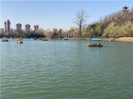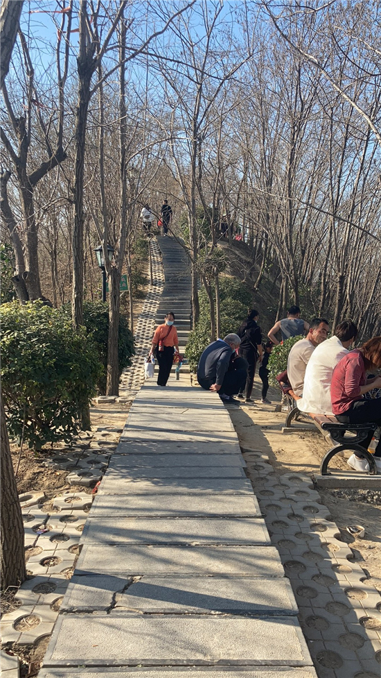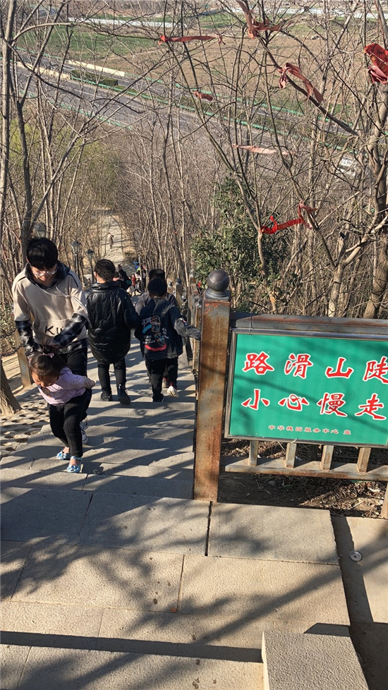 在槐香湖邊,年輕人三五結(jié)伴登上游艇,“坐船能到湖那邊的小島,島上也有槐樹(shù),拍照肯定特別漂亮?!狈掂l(xiāng)大學(xué)生把七星島上的景色留在了自己的相機(jī)里。七星島與槐香湖相連的橋上,人潮擁擠,有的人席地而坐,觀賞著橋上的風(fēng)景。當(dāng)問(wèn)道在外市工作的王先生游玩感受時(shí),他回答到:“年后上班沒(méi)時(shí)間鍛煉身體,今天我把全家人帶來(lái)登山,呼吸一下新鮮空氣?!雹?