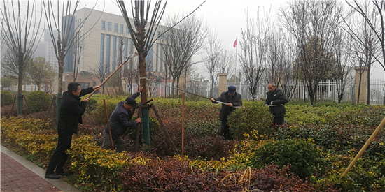 春回大地,萬物復(fù)蘇。春季是植樹的好時節(jié),2月28日,在市城鄉(xiāng)一體化示范區(qū)騰飛路與平安路交叉口附近,有工作人員正在給新栽的樹木進(jìn)行養(yǎng)護(hù)和加固。②9