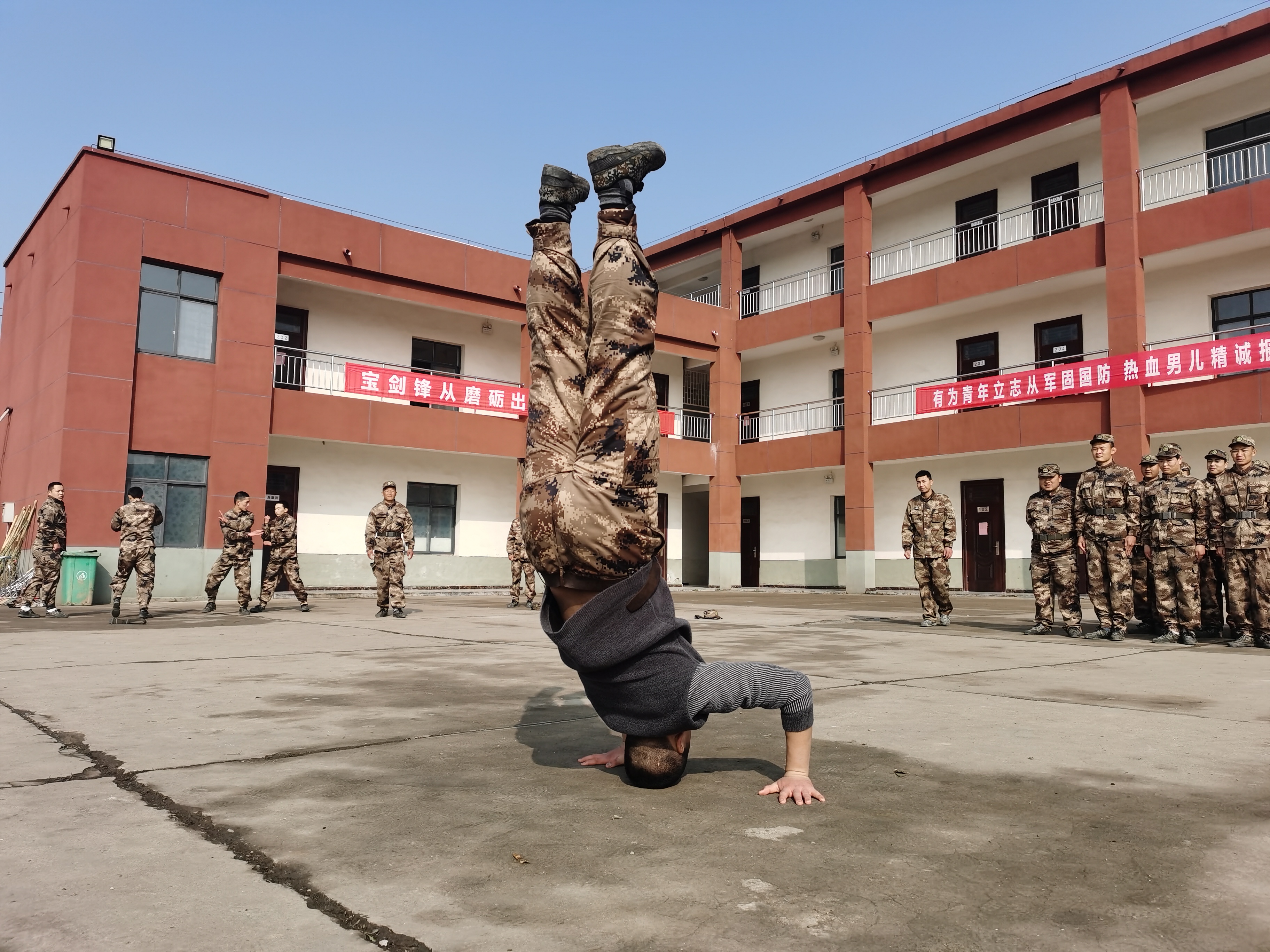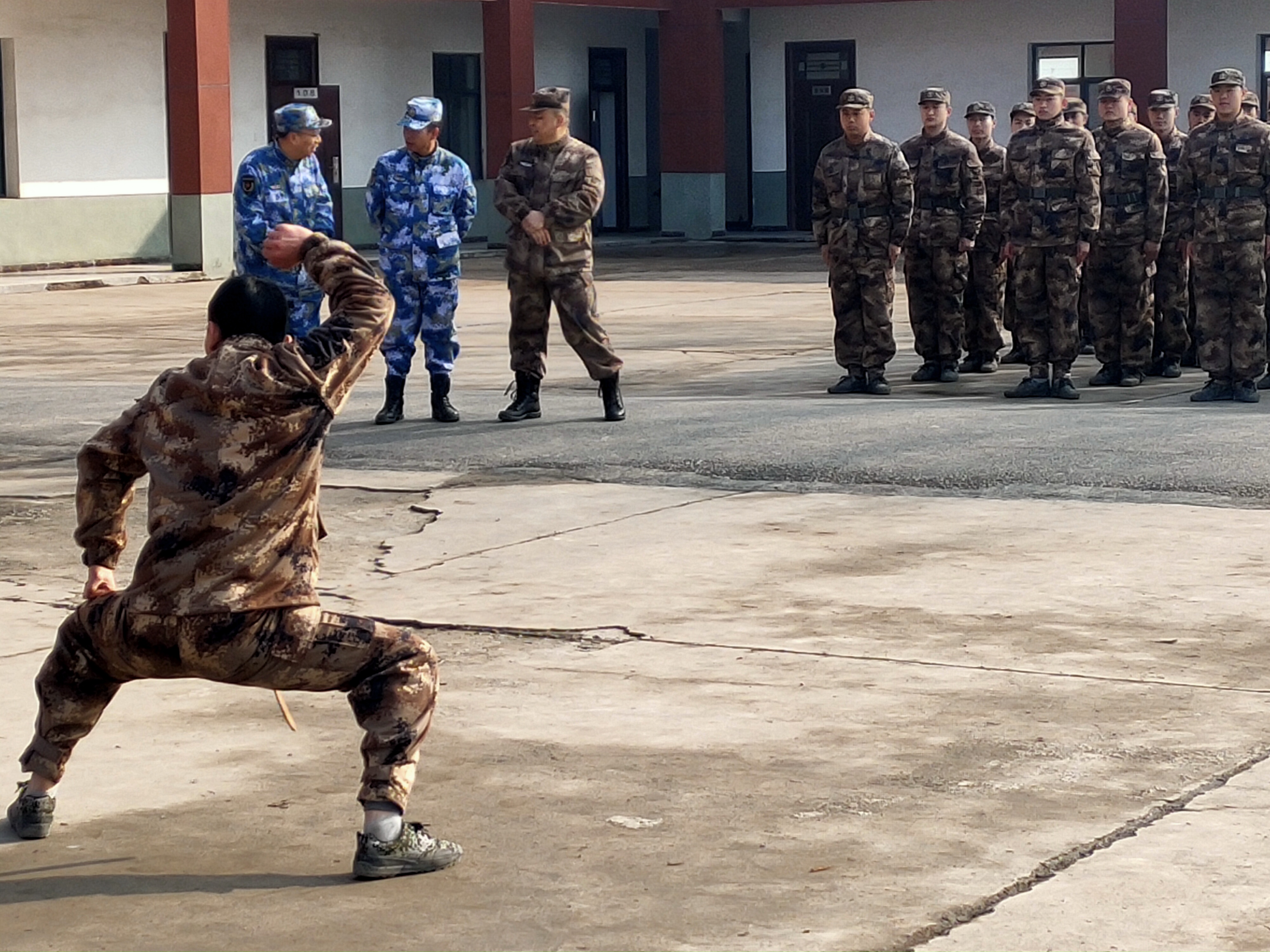 “報告首長,我叫趙三朋,畢業(yè)于武漢體育學(xué)院,武術(shù)套路、散打和兵器專業(yè)?!痹趹?zhàn)友們的歡呼聲中,趙三朋主動請纓表演了一套傳統(tǒng)武術(shù)套路,只見他一招一式行云流水、虎虎生威 ,前后空翻嫻熟到位、收放自如,迎得戰(zhàn)友們陣陣喝彩聲,湯維政也禁不住連聲稱贊。
