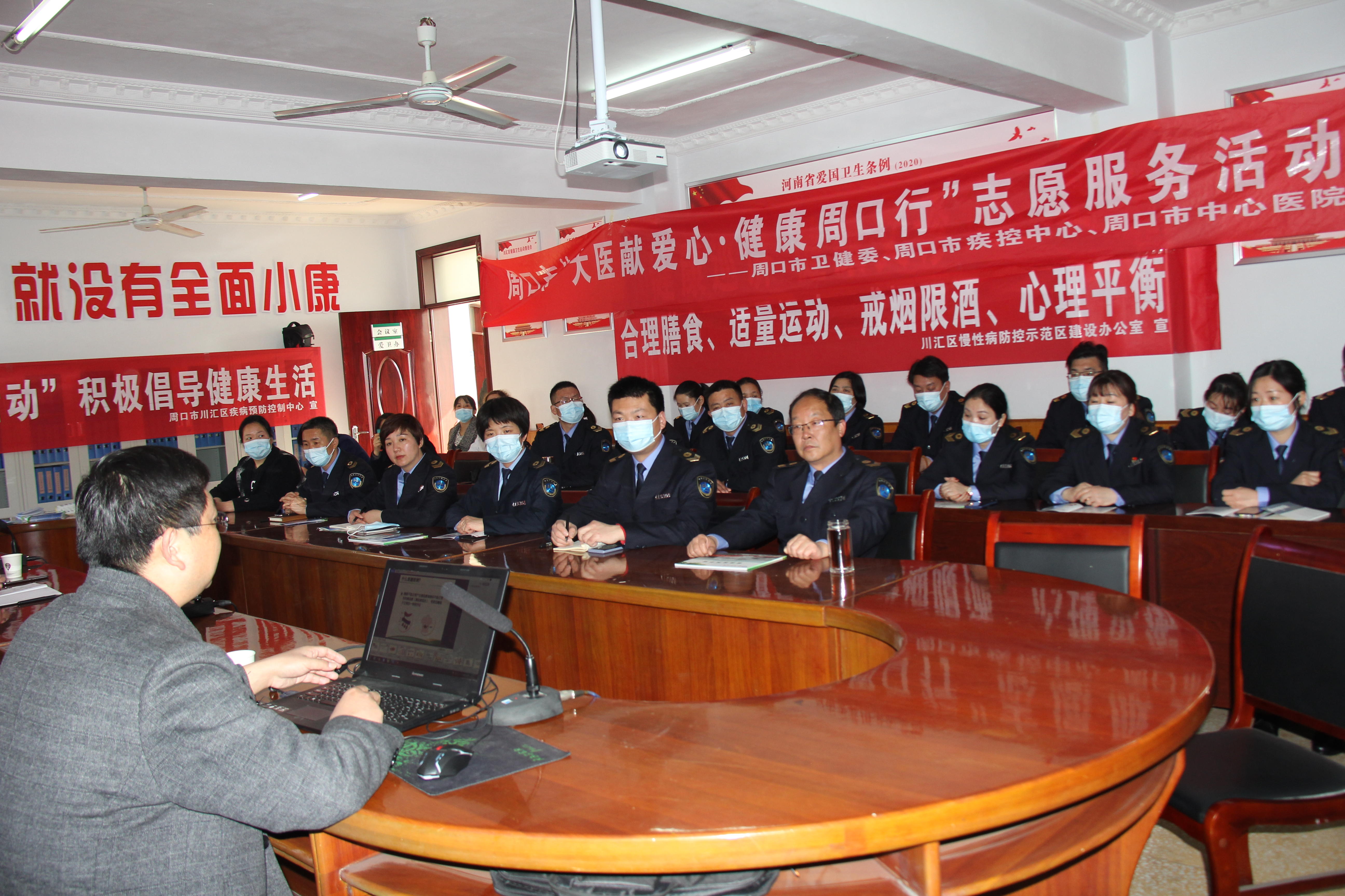 為深入開(kāi)展“河南省新時(shí)代文明實(shí)踐推動(dòng)周”活動(dòng),3月4日下午,由川匯區(qū)衛(wèi)健委組織,市健康教育所、市中心醫(yī)院、區(qū)健康教育所、區(qū)疾病預(yù)防控制中心、區(qū)慢性病防控示范區(qū)建設(shè)辦公室、人和社區(qū)衛(wèi)生服務(wù)中心等單位承辦的“新時(shí)代文明實(shí)踐推動(dòng)周”“健康周口行 大醫(yī)獻(xiàn)愛(ài)心”健康科普活動(dòng)走進(jìn)川匯區(qū)衛(wèi)生計(jì)生監(jiān)督所。講座邀請(qǐng)周口市中心醫(yī)院內(nèi)分泌專(zhuān)家楊東輝為川匯區(qū)衛(wèi)生計(jì)生監(jiān)督所干部職工送上“糖尿病如何科學(xué)防治”健康科普知識(shí)講座。