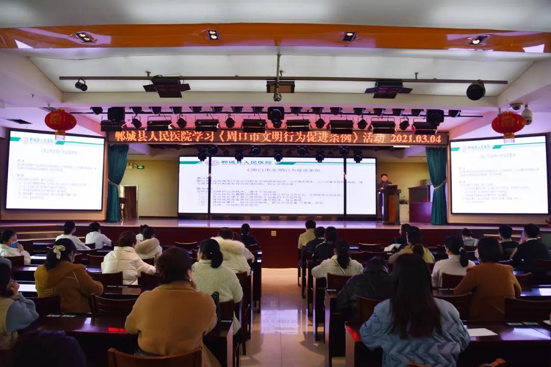 近日,鄲城縣人民醫(yī)院按照縣文明辦的要求,在全院范圍內(nèi)深入開展學(xué)習(xí)《周口市文明行為促進(jìn)條例》活動(dòng)。宣教科長孫小明結(jié)合醫(yī)院工作實(shí)際,對(duì)照《周口市文明行為促進(jìn)條例》五章42條逐章逐條進(jìn)行詳細(xì)解讀,重點(diǎn)強(qiáng)調(diào)了文明交通、文明旅游、文明餐桌、文明上網(wǎng)及窗口服務(wù)的部分條款。