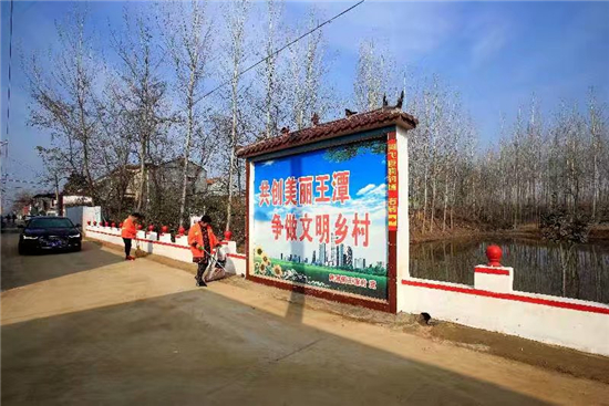 綠樹環(huán)抱的村落,四通八達的水泥路,溫馨雅致的文化長廊,花木掩映的庭院……初春時節(jié),位于周項路一側(cè)的商水縣黃寨鎮(zhèn)王潭行政村處處美麗如畫。