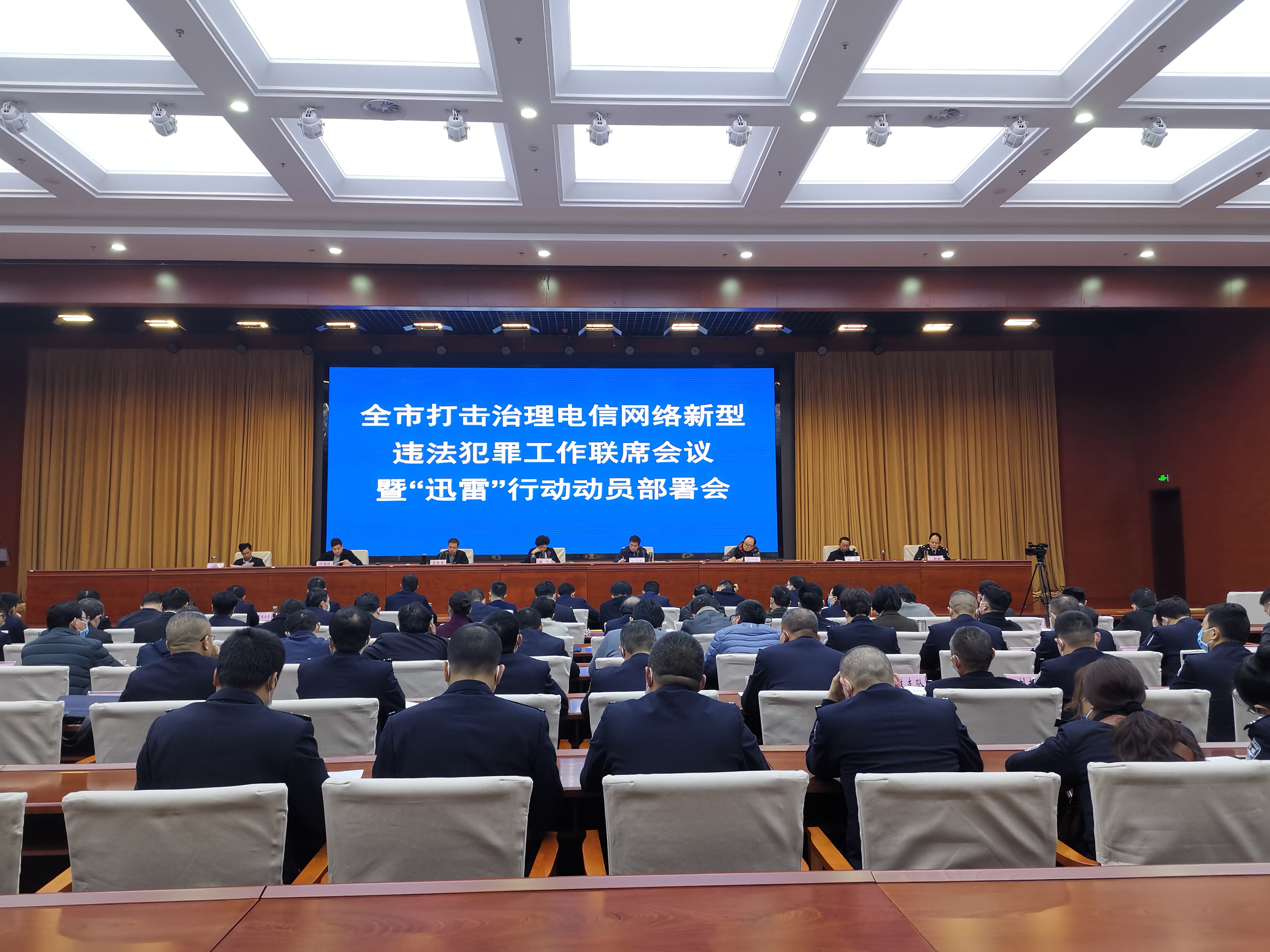 3月19日下午,我市召開打擊治理電信網(wǎng)絡新型違法犯罪工作聯(lián)席會議暨“迅雷”行動動員部署會。市委常委、政法委書記路云,副市長、公安局長張元明參加會議。