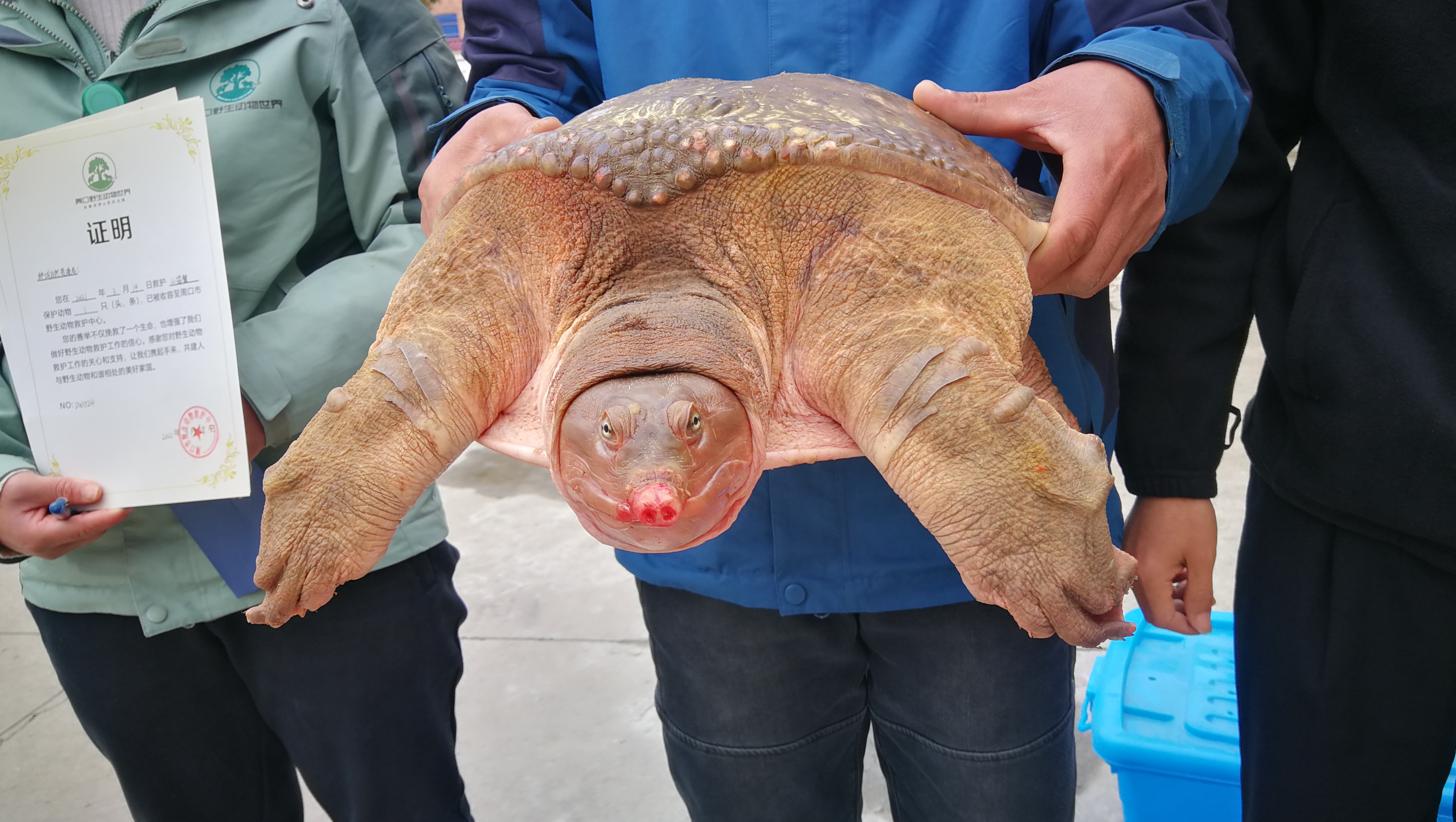 近日,鄲城縣自然資源局接到縣城市管理局公園管理辦公室工作人員救助電話,稱在人民公園岸邊又發(fā)現(xiàn)一只“大老鱉”。接到救助電話后,該局領(lǐng)導(dǎo)立即指派野生動植物保護和自然保護地管理股工作人員前往現(xiàn)場救助。經(jīng)過勘察,這只“大老鱉”與3月9日救助的那只山瑞鱉一樣,屬國家二級保護動物,長度達到70厘米,重量超過30斤,頭部和腳部受傷嚴(yán)重。經(jīng)過簡單消毒處理后,這只山瑞鱉被送往周口野生動物救助中心進行進一步的救治。