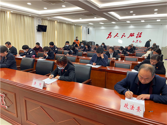 3月25日,川匯區(qū)舉行政法隊伍教育整頓知識競賽活動。競賽采取“雙隨機(jī)”的形式,在區(qū)委政法委機(jī)關(guān)、區(qū)法院、區(qū)檢察院、區(qū)公安分局、區(qū)司法局隨機(jī)各挑選6名人員進(jìn)行組隊,隨機(jī)抽取考題開展競賽。測試考卷共計36道試題,考試時間為40分鐘。區(qū)委常委、政法委書記李祥生主持競賽測試。測試采取閉卷的方式,并進(jìn)行全程錄像??荚嚱Y(jié)束后,區(qū)紀(jì)委監(jiān)委、區(qū)委組織部相關(guān)負(fù)責(zé)人現(xiàn)場改卷,現(xiàn)場公布成績,現(xiàn)場通報頒獎。