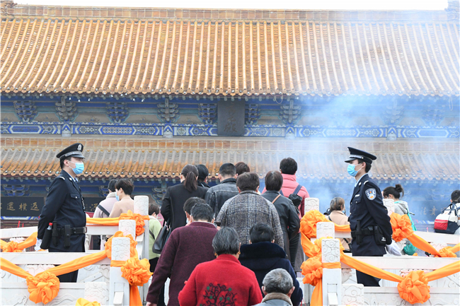 在太清宮、明道宮景區(qū)主要活動點,全力做好人流、車流疏導和受理報警求助等工作;執(zhí)勤民警還及時為走失兒童家長、行動不便的老人等提供熱情周到的服務;民輔警積極向過往香客宣傳“金鐘罩”防詐騙知識,耐心細致地手把手教群眾注冊“金鐘罩”;交警大隊根據(jù)職責任務設置了駐地警衛(wèi)組、機動應急組、事故應急組,大隊領導靠前指揮,因情施策,合理調(diào)度,全力保障活動現(xiàn)場道路交通安全暢通。③2