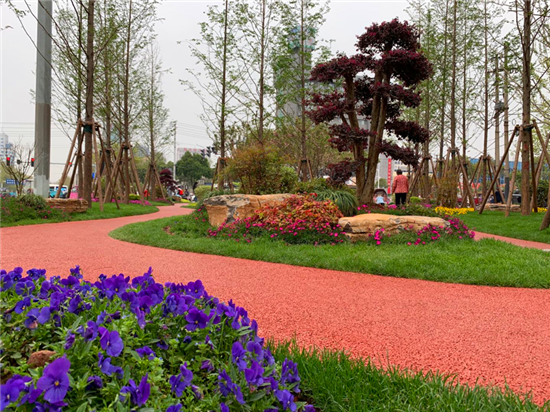 “風景真是太美了,咱們坐這兒歇會吧?!?月7日一大早,園里就熱鬧起來,有蹣跚學步的孩童,有鍛煉身體的中年人,也有互相攙扶依偎的老人。自打游園開放后,市民李大媽成了這兒的???,“瞅空就帶著小孫子來這兒玩?!本G化帶一夜間“變身”,讓過往市民贊嘆不已,大家的幸福感、獲得感進一步增強。