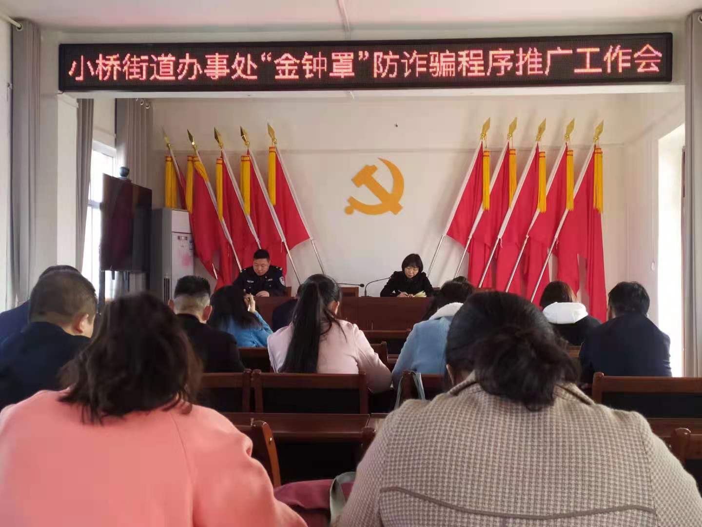 堅(jiān)持黨建引領(lǐng),高起點(diǎn)安排部署。辦事處堅(jiān)持以黨建統(tǒng)領(lǐng)為中心,第一時(shí)間成立了防范詐騙宣傳工作領(lǐng)導(dǎo)小組,立即召開了全辦推廣“金鐘罩”程序?qū)n}會(huì),安排部署宣傳推廣工作。同時(shí),每周召開“金鐘罩”放詐騙程序推廣小結(jié)會(huì),對(duì)各社區(qū)推廣注冊(cè)人數(shù)情況進(jìn)行日督查周統(tǒng)計(jì)通報(bào),對(duì)落后社區(qū)進(jìn)行通報(bào)批評(píng)。堅(jiān)持四級(jí)聯(lián)動(dòng),高規(guī)格落實(shí)責(zé)任。辦事處將下轄9個(gè)社區(qū)根據(jù)實(shí)際情況劃分為30個(gè)網(wǎng)格,形成了“科級(jí)干部—派出所民警—社區(qū)干部—志愿者服務(wù)隊(duì)”四位一體的小橋辦“金鐘罩”防詐騙推廣小組,由綜治中心牽頭搭線,各社區(qū)干部、黨員志愿者和轄區(qū)派出所民警結(jié)成宣傳對(duì)子,挨家挨戶上門宣傳,夯實(shí)責(zé)任,主動(dòng)出擊,形成合力,成效明顯。