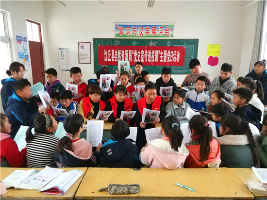 “同學(xué)們,我們?yōu)槭裁匆獙W(xué)習(xí)黨史呢?主要是學(xué)習(xí)黨史可以知興替、明得失、知源頭、明現(xiàn)在、感黨恩、明未來(lái)。百年黨史大致分為三個(gè)階段……”“我們中國(guó)共產(chǎn)黨的生日是哪天?”“黨徽是哪兩種圖案組成的?分別象征著什么?”這是4月7日,沈丘縣自然資源局走進(jìn)沈丘縣北城辦事處王浩莊小學(xué)開展“黨史宣傳進(jìn)校園”主題黨日活動(dòng)的場(chǎng)景。