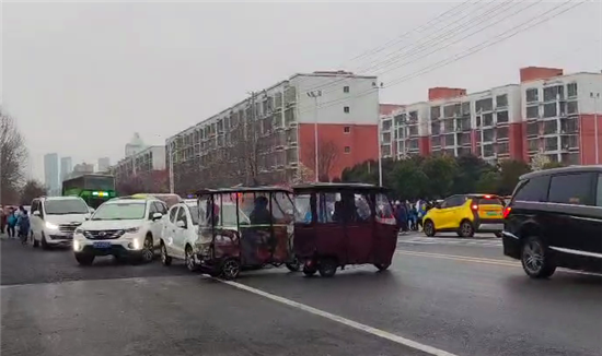 文昌路小學(xué)附近三輪車(chē)橫穿馬路造成交通堵塞