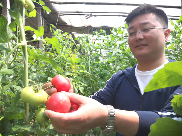 種植番茄是理三家族的支柱產(chǎn)業(yè)。他的父親理效明是原皮營鄉(xiāng)雙樓村主任,一心想帶領(lǐng)鄉(xiāng)親們發(fā)家致富的理效明,自1996年開始就嘗試著發(fā)展大棚番茄種植。幾年下來,村民們從中嘗到了甜頭,當(dāng)時的大棚番茄種植小具規(guī)模。高中下學(xué)后的理三于2010年便一頭扎進(jìn)大棚里,潛心專攻大棚番茄種植。第一年在36畝地上建了6個棚,當(dāng)年就收益30多萬元。
