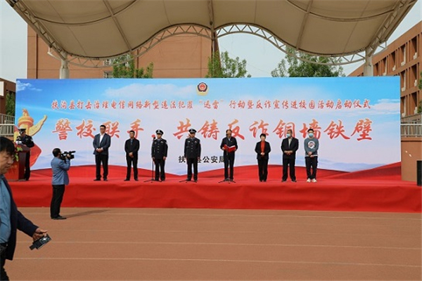 為進(jìn)一步提高學(xué)生對(duì)電信網(wǎng)絡(luò)詐騙手法的識(shí)別和防范能力,4月18日9點(diǎn)30分,扶溝高中聯(lián)合扶溝縣公安局、扶溝縣教體局、電信運(yùn)營商、銀行等單位共同舉辦了“警校聯(lián)手,共鑄反詐銅墻鐵壁”宣傳教育活動(dòng),本次宣傳教育活動(dòng)也是扶溝縣反詐宣傳進(jìn)校園活動(dòng)的啟動(dòng)儀式。