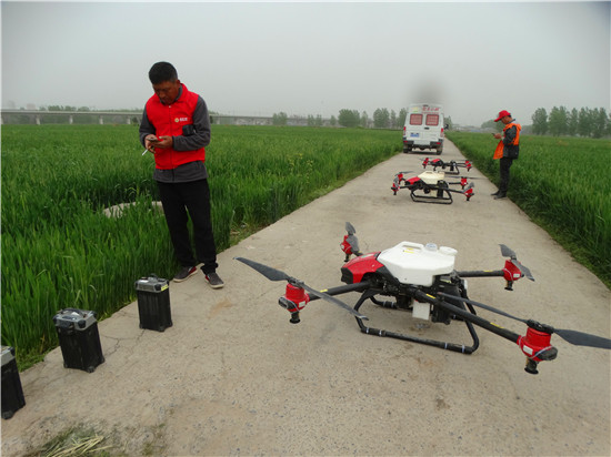 據(jù)了解,目前,該鎮(zhèn)日出動小麥無人機(jī)24架次,日防治面積2萬余畝,計劃4月19日,全鎮(zhèn)3.2萬畝麥田全部噴藥防控一遍。③5