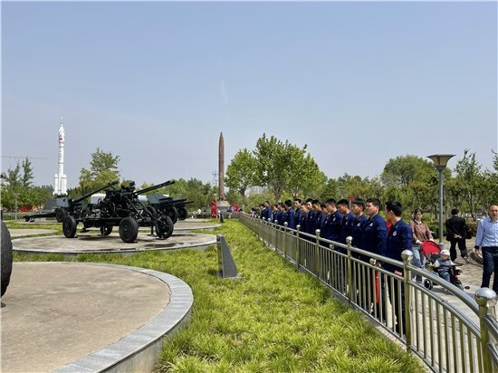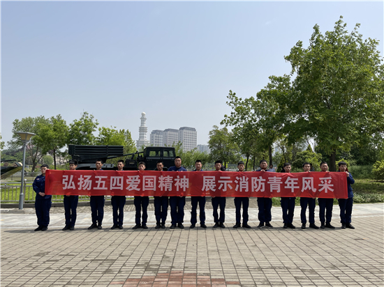 5月4日上午,天氣晴朗。在周口公園,周口市城鄉(xiāng)一體化示范區(qū)消防大隊的青年消防隊員們通過跑步訓練等方式慶祝五四青年節(jié)。消防隊員欒慶帥告訴記者:“今天是五四青年節(jié),我們通過訓練、參觀國防設施這樣的方式,來表達我們的愛國熱情。”②9