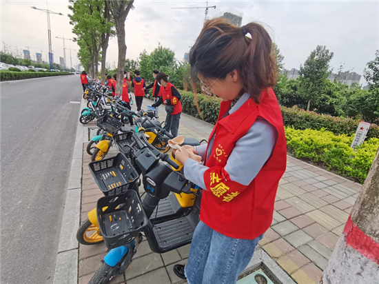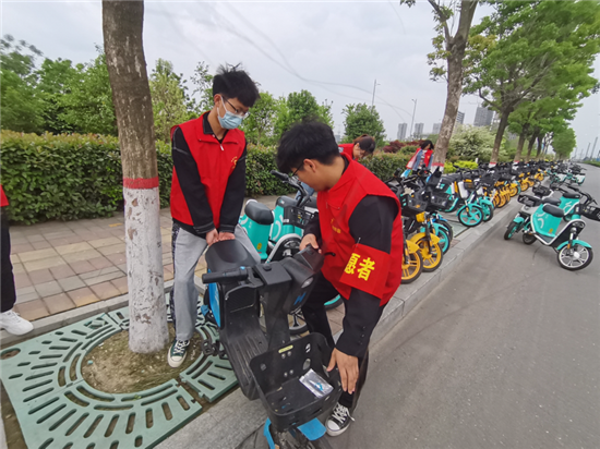 當(dāng)天上午,由河南科技職業(yè)大學(xué)志愿者組成的綠色低碳騎行隊伍,從河南科技職業(yè)大學(xué)正門出發(fā)騎行,用實際行動宣傳愛護地球、倡導(dǎo)綠色騎行的理念。騎行結(jié)束后,志愿者們組成宣傳引導(dǎo)隊伍,走上大街,引導(dǎo)、糾正共享單車規(guī)范停放,對不規(guī)范停放的共享單車進行整齊擺放,清理共享單車上亂張貼的小廣告,繼續(xù)開啟當(dāng)日第二場共享單車宣傳引導(dǎo)志愿服務(wù)活動。