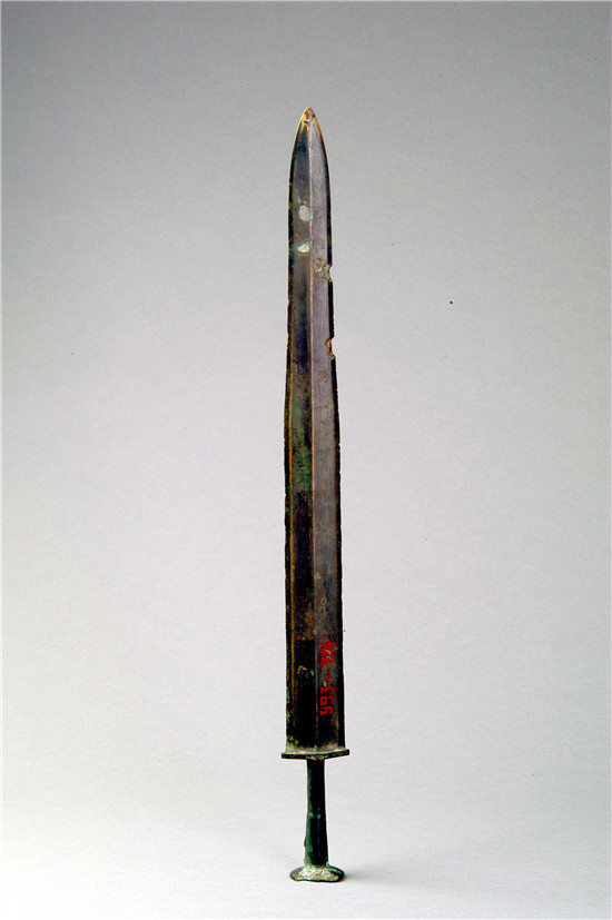 劍,古代冷兵器,屬于“短兵”,乃是兵中王者,被稱為“百兵之君”。開雙刃身直頭尖,橫豎可傷人,擊刺可透甲,兇險(xiǎn)異常,生而為殺。也用以佩帶,以顯示貴族的身份地位。青銅劍,一般是銅、錫合金冶煉鑄造而成的,商周時(shí)期開始出現(xiàn),春秋戰(zhàn)國(guó)時(shí)期達(dá)到頂峰,一直延續(xù)到秦漢,隨著鐵劍的出現(xiàn)才銷聲匿跡。越王劍,本是越王所鑄之劍,也可用于賞賜和饋贈(zèng)。