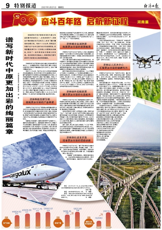 河南是我們黨開展革命活動與建立黨組織最早的省份之一,在黨的領(lǐng)導(dǎo)下,河南這片鐫刻著紅色印記的沃土,發(fā)生了翻天覆地的滄桑巨變。黨的十八大以來,河南堅定沿著習(xí)近平總書記指引的方向奮勇前進(jìn),把高質(zhì)量發(fā)展作為1億河南人民最根本的福祉,實(shí)現(xiàn)了一系列具有標(biāo)志性意義的突破。站在新的歷史起點(diǎn)上,河南將奮力譜寫新時代中原更加出彩的絢麗篇章。