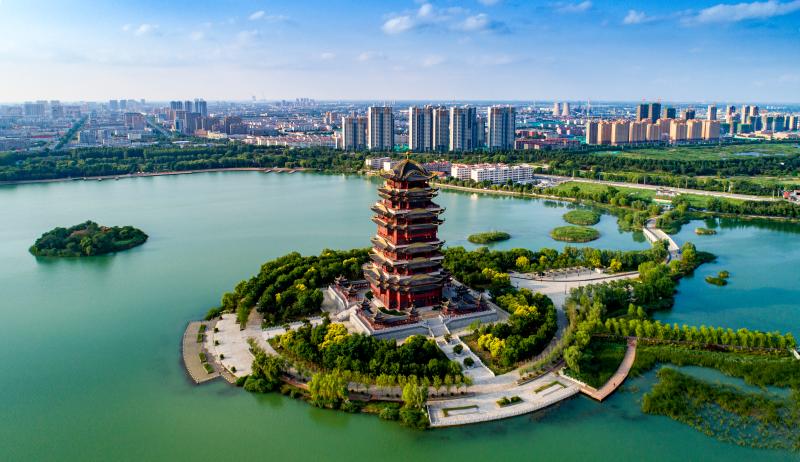 圖2:黃河樓拔地而起,成為黃河下游一座標(biāo)志性建筑。濱州正匯聚黃河新動能,奏響生態(tài)保護(hù)和高質(zhì)量發(fā)展的黃鐘大呂。濱州日報(bào)社記者 李默 攝