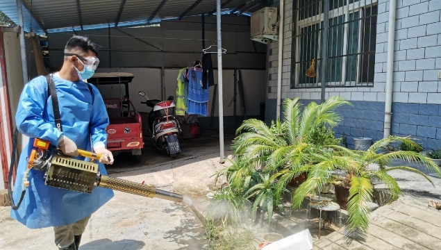 在女媧景區(qū),只見老關(guān)和其他3名消殺人員發(fā)動機器、拉出噴管、手提噴槍,一邊前進,一邊揮動,白色水霧隨之噴涌而出,所到之處細菌病毒“無處遁形”。大家齊心協(xié)力,很快就把景區(qū)的角角落落消殺個遍。
