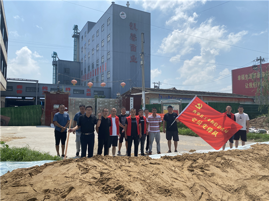 西華縣“萬(wàn)人助萬(wàn)企”活動(dòng)辦公室副主任、縣工信局局長(zhǎng)趙宏偉立即向縣“萬(wàn)人助萬(wàn)企”指揮部進(jìn)行了匯報(bào),并組織工信局防汛應(yīng)急突擊隊(duì)16名隊(duì)員迅速趕往西華縣凱馨面粉廠,裝沙袋,加固糧倉(cāng),運(yùn)沙土,筑牢廠區(qū)第一道防水隔離帶。防汛應(yīng)急突擊隊(duì)隊(duì)員僅用2個(gè)小時(shí)的時(shí)間完成了企業(yè)的防汛要求,企業(yè)負(fù)責(zé)人十分滿(mǎn)意。 ③7