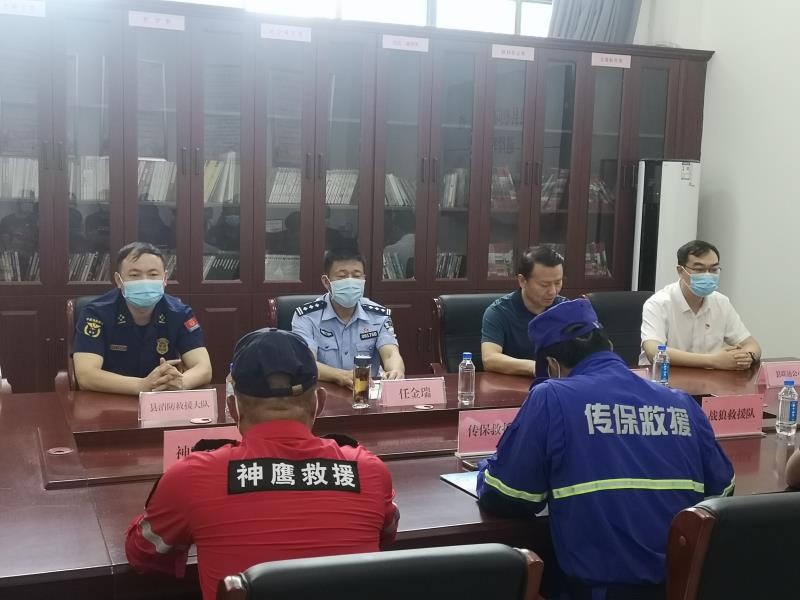 會上,各救援隊代表介紹了防汛救援情況并合影留念。②5