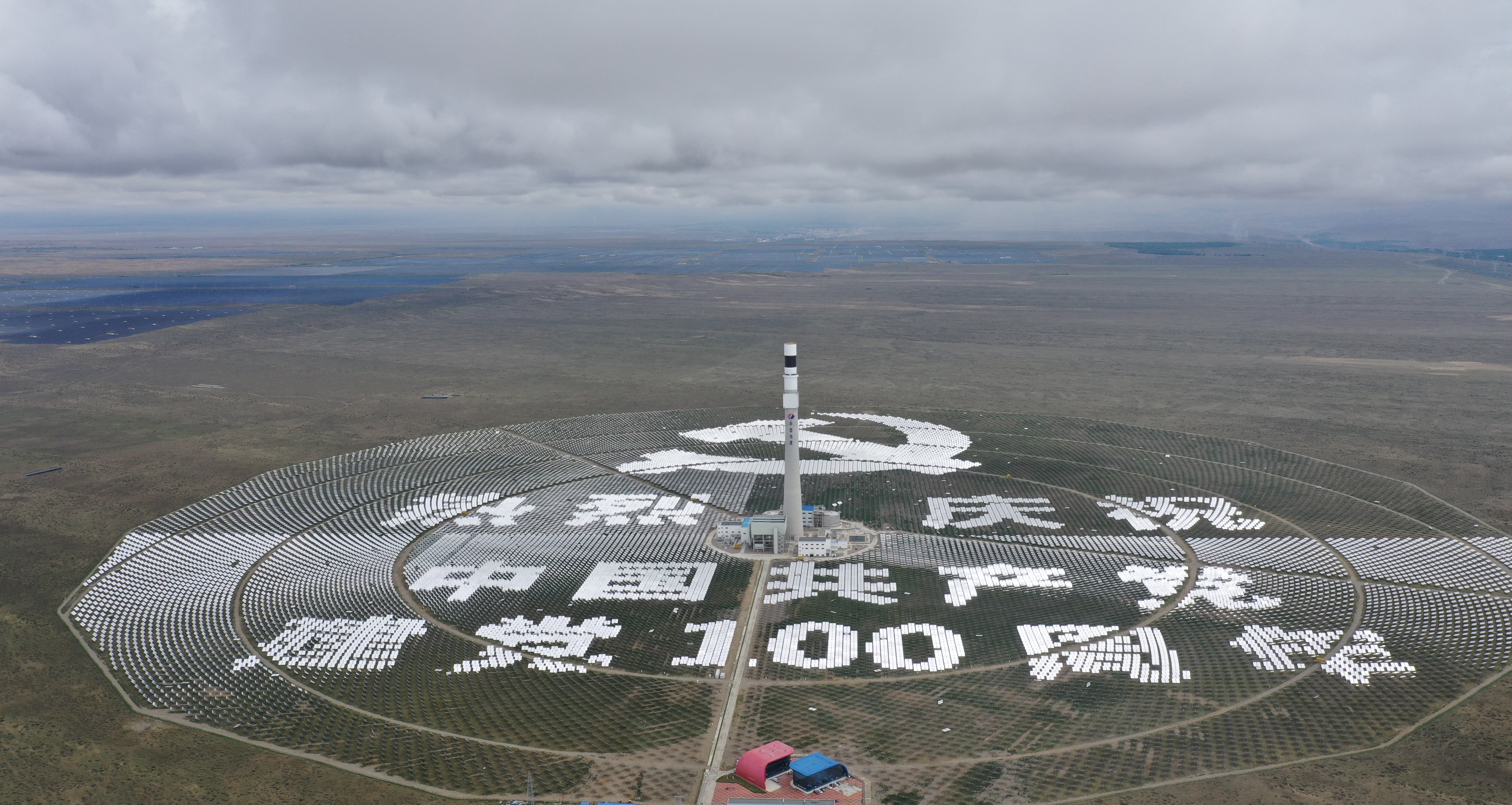 圖5:5萬千瓦熔鹽塔式光熱發(fā)電項目。(中電建青海共和50MM塔式光熱發(fā)電項目部)