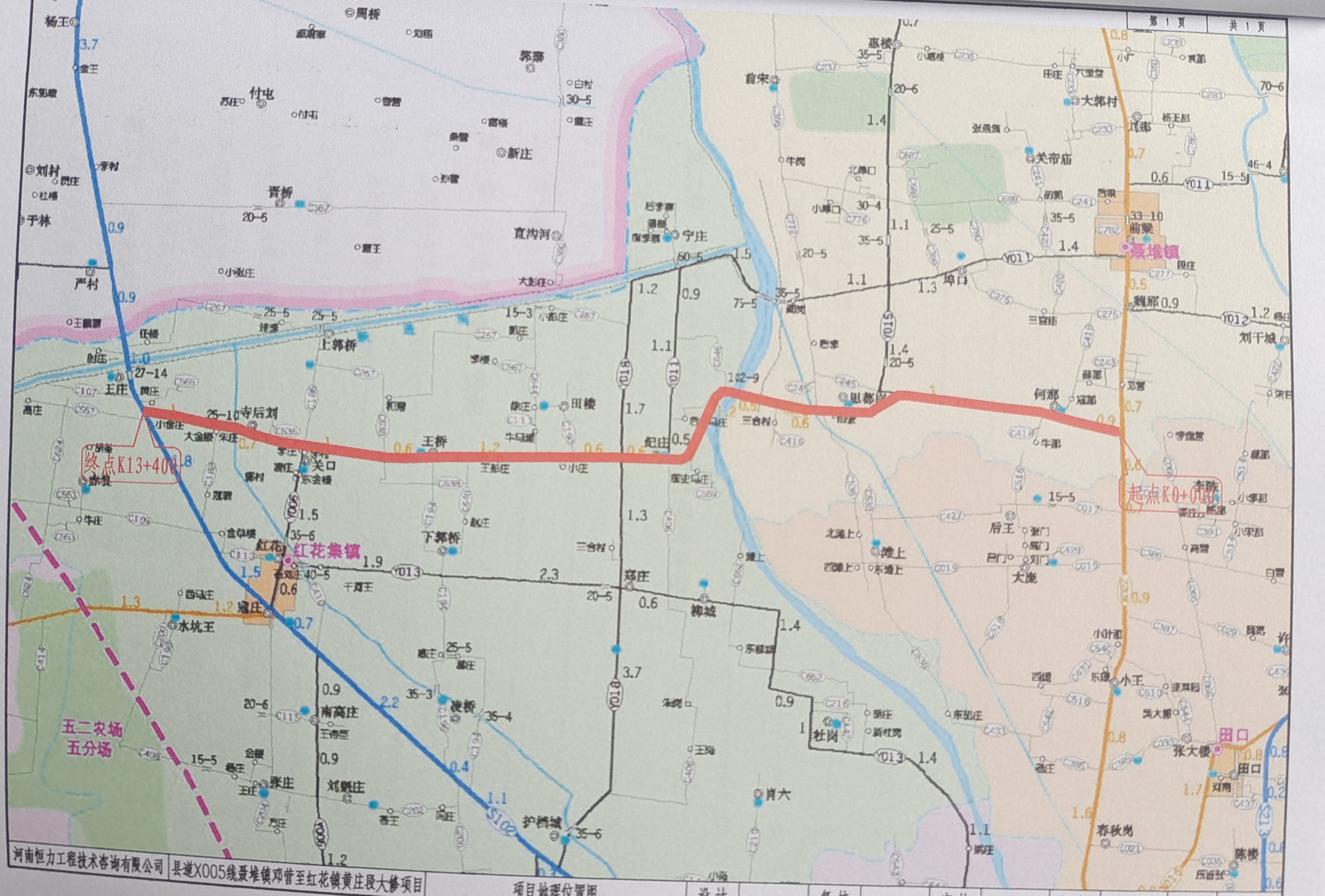 據(jù)了解,西華縣道X005線聶堆鎮(zhèn)鄧營至紅花集鎮(zhèn)黃莊段改建項目,起點位于縣道X022扶鄧線與符艾線交叉口處,線路總體呈東西走向,向西經(jīng)何那至思都崗跨過賈魯河,向西依次經(jīng)過后史馬莊、小莊、王彭莊、王橋、郭莊、寺后劉、大金莊、黃莊至國道G230交叉口處結(jié)束,建設(shè)里程13.4公里,路線全線采用三級公路技術(shù)標(biāo)準(zhǔn),設(shè)計速度40km/h,路基寬10米,路面寬為7米,采用瀝青混凝土結(jié)構(gòu),項目預(yù)計總投資2575.05萬元。